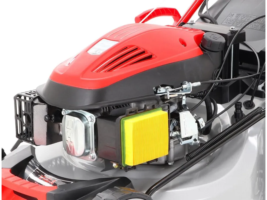 Vďaka variabilnému pojazdu sa kosačka prispôsobí tempu chôdze a uľahčuje prácu aj na nerovnom teréne. Elektrické 12 V štartovanie robí štartovanie jednoduchým stlačením tlačidla, pričom je k dispozícii aj tradičné ručné štartovanie pre maximálnu flexibilitu.