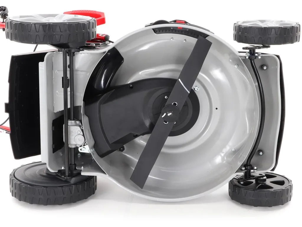 Ergonomicky tvarovaná rukoväť s ovládacím panelom a centrálnym nastavením výšky kosenia zabezpečuje pohodlie ovládania. Kosačka je ideálna pre majiteľov domov, záhradkárov či profesionálnych užívateľov, ktorí potrebujú výkonný, pohodlný a multifunkčný stroj pre starostlivosť o trávnik.