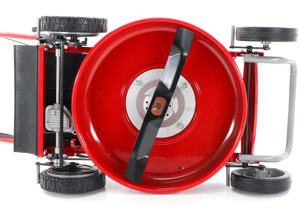 Tato funkce může eliminovat škody na sekačce způsobené nárazem nože do překážky. Dále je tato sekačka vybavena pevnými zadními koly a sklopnou rukojetí pro snadné uskladnění a přepravu. Dalším velkým unikátem je motor, který patří mezi to nejlepší