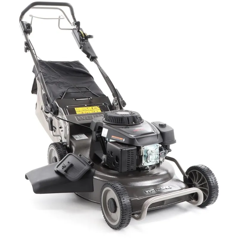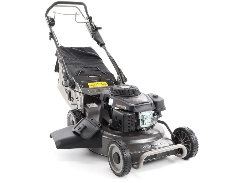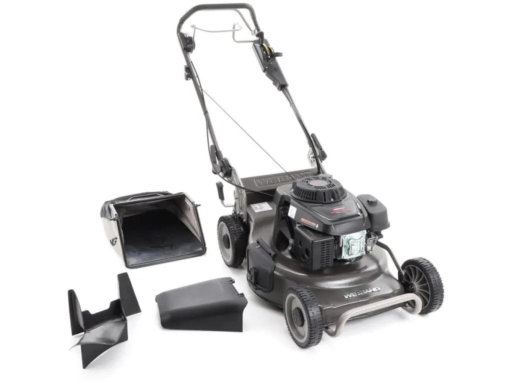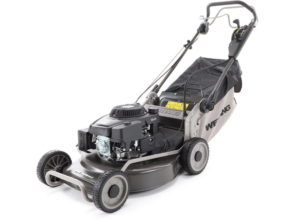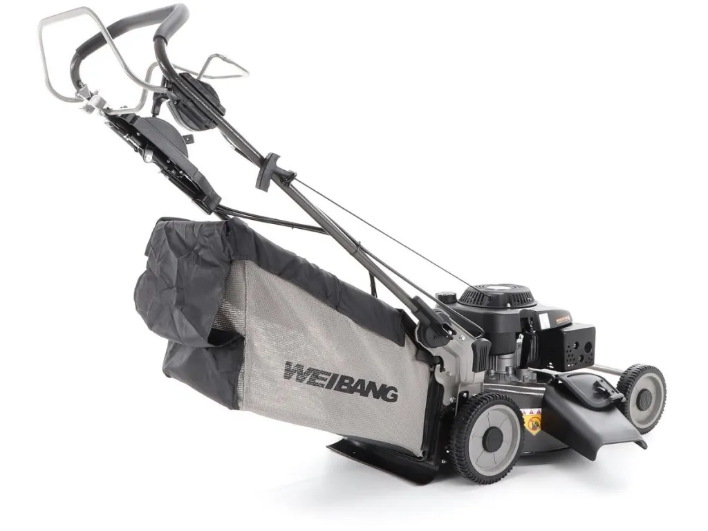 bočním výhozem, mulčovat i zadním deflektorem a má variabilní pojezd daný profesionální 3-rychlostní kovovou převodovkou. Výhoda silného motoru WEIBANG o super výkonu 7 HP a nože s velkými lopatami Vám perfektně sebere i přerostlou mokrou trávu.