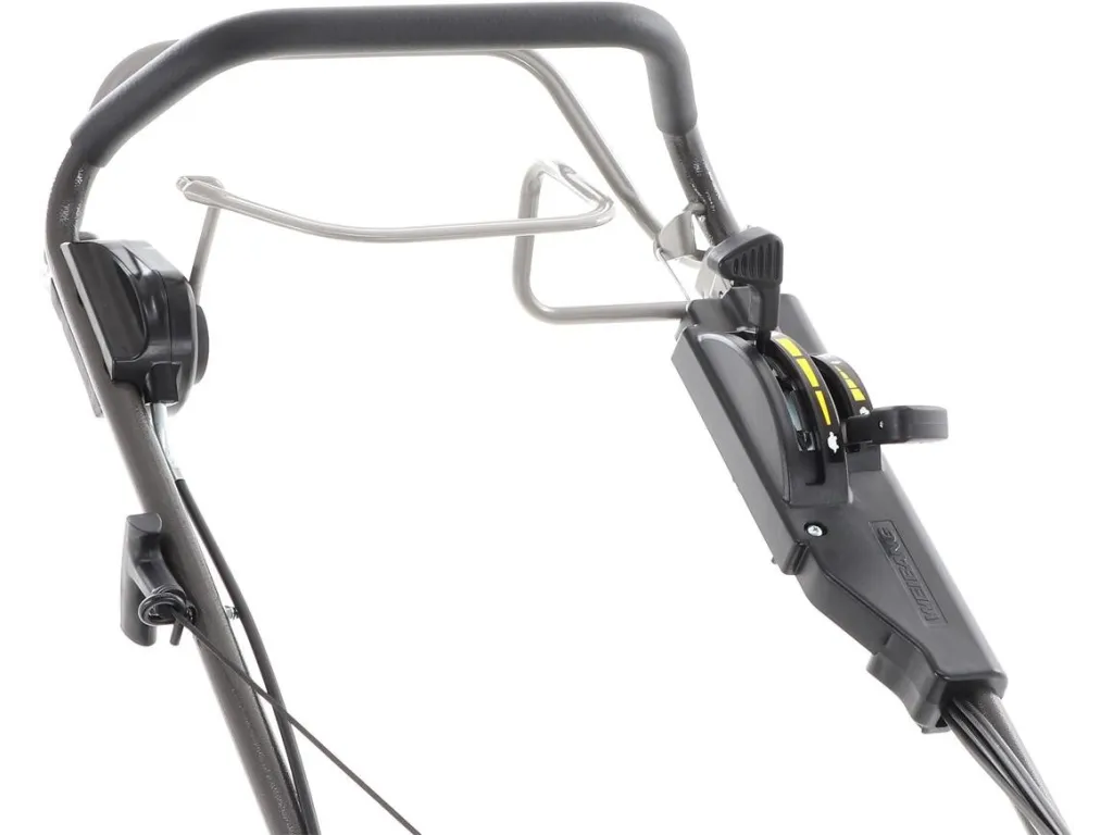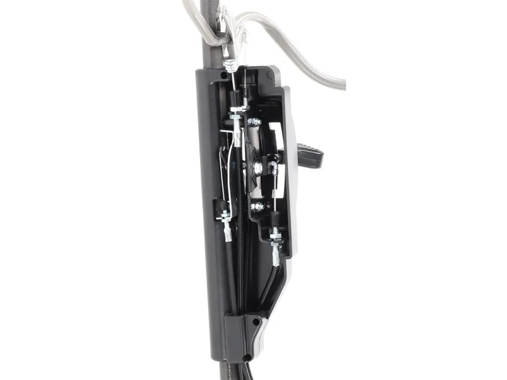 Zadní výhoz: ANO v profesionální nástavbě Ovládací panel na rukojeti: ANO Ergonomicky měkčená rukojeť: ANO Kovové rychloupínáky madla: ANO