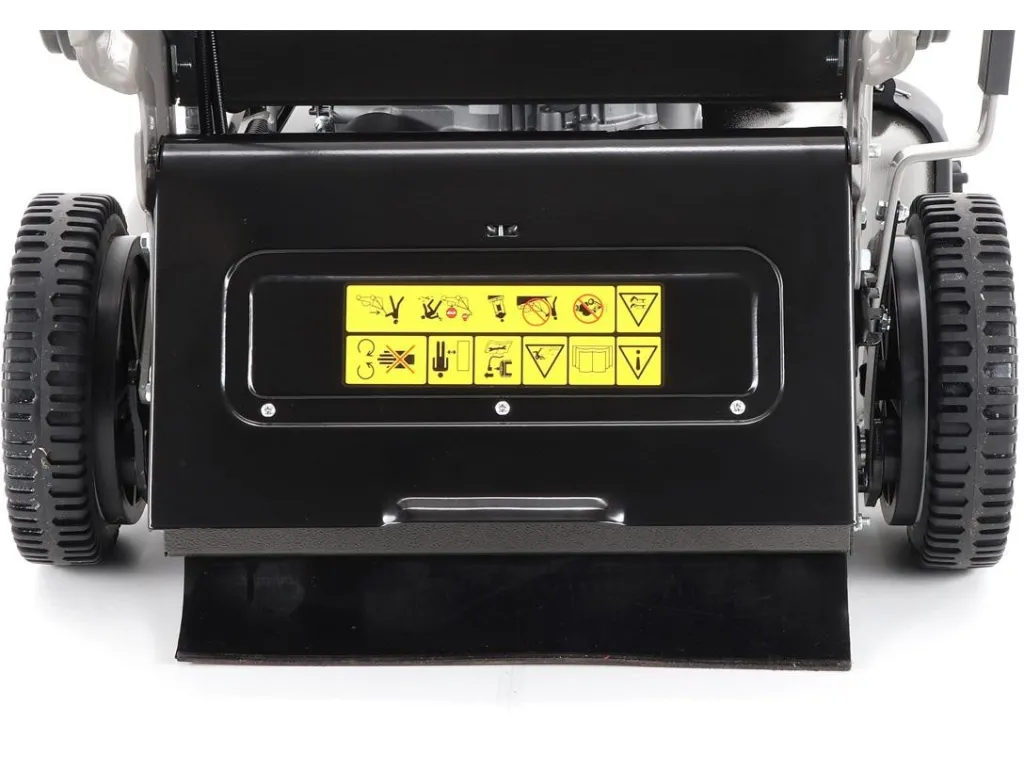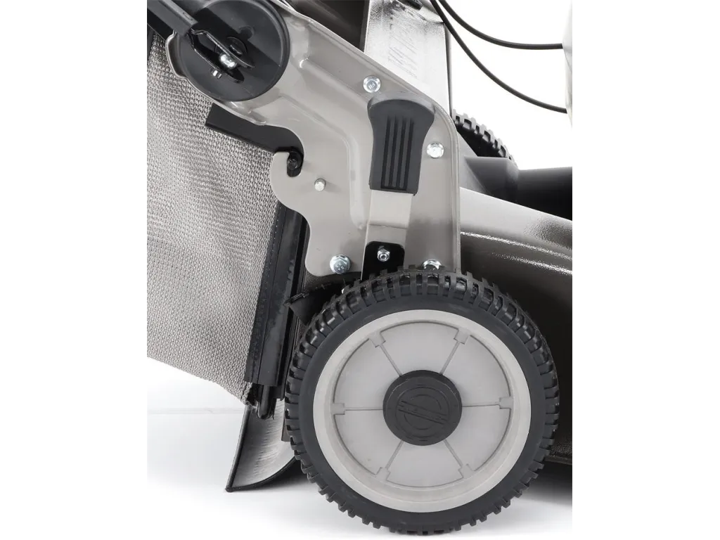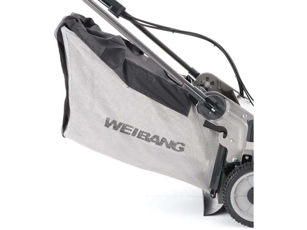 Dále je tato sekačka vybavena pevnými zadními AL koly a sklopnou rukojetí pro snadné uskladnění a přepravu. Masivní žačí nůž s mohutnými vyhazovacími "lopatami - tzv. BIG BLADE" a velký koš spolu se zajímavou cenou dělají z této sekačky WEIBANG WB 537 SCV BBCPRO