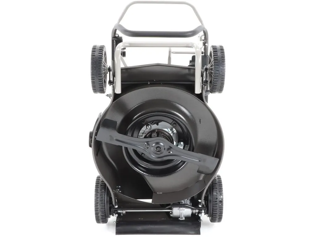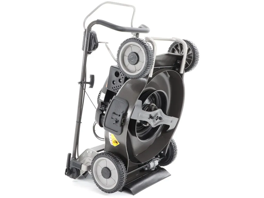 Novinkou sekačky je funkce tzv. "CHYTRÉ ŘEŠENÍ", sekačku lze pro ekonomické uskladnění, snadné čištění, servisování otočit a postavit na zadní speciální patky šasí, tímto se snadno dostanete na spodní část žacího ústrojí, uložení náprav a převodovku.