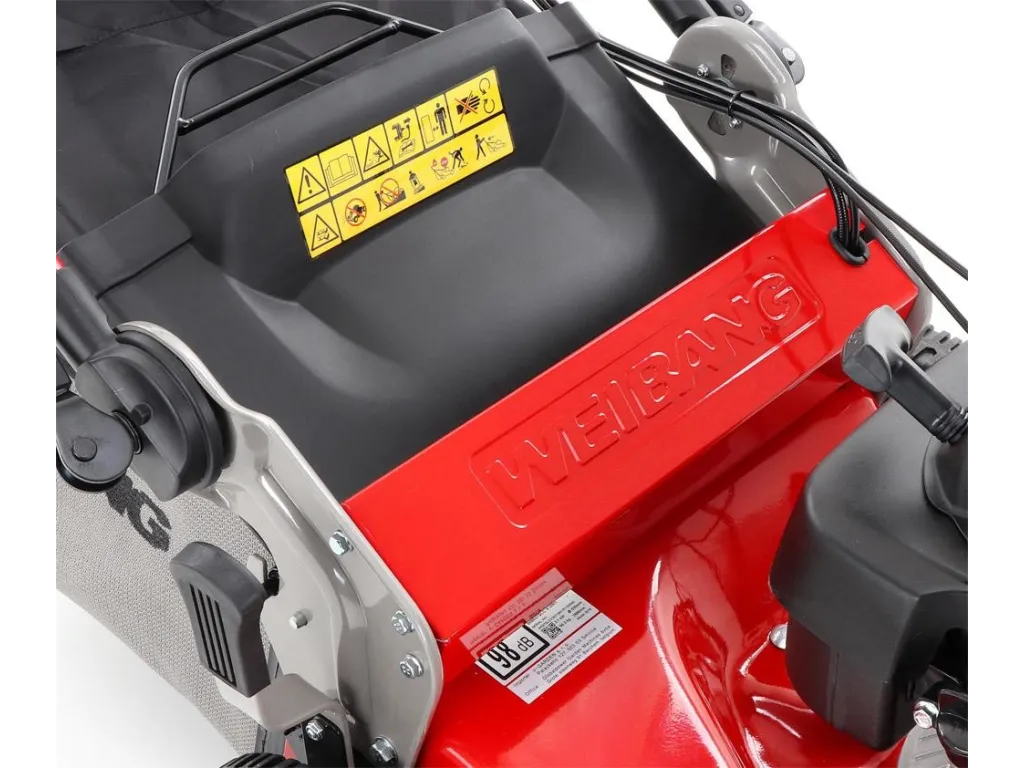 Sekačka WEIBANG WB 536 SBV 6in1 vyniká speciálním pevným a masivním ocelovým šasim. Velkou předností této sekačky je variabilnost použití funkcí 6 in 1, což znamená, že sekačka WEIBANG WB 536 SBV 6in1 umí sbírat posečenou trávu do koše, mulčuje, vyhazuje trávu bokem,