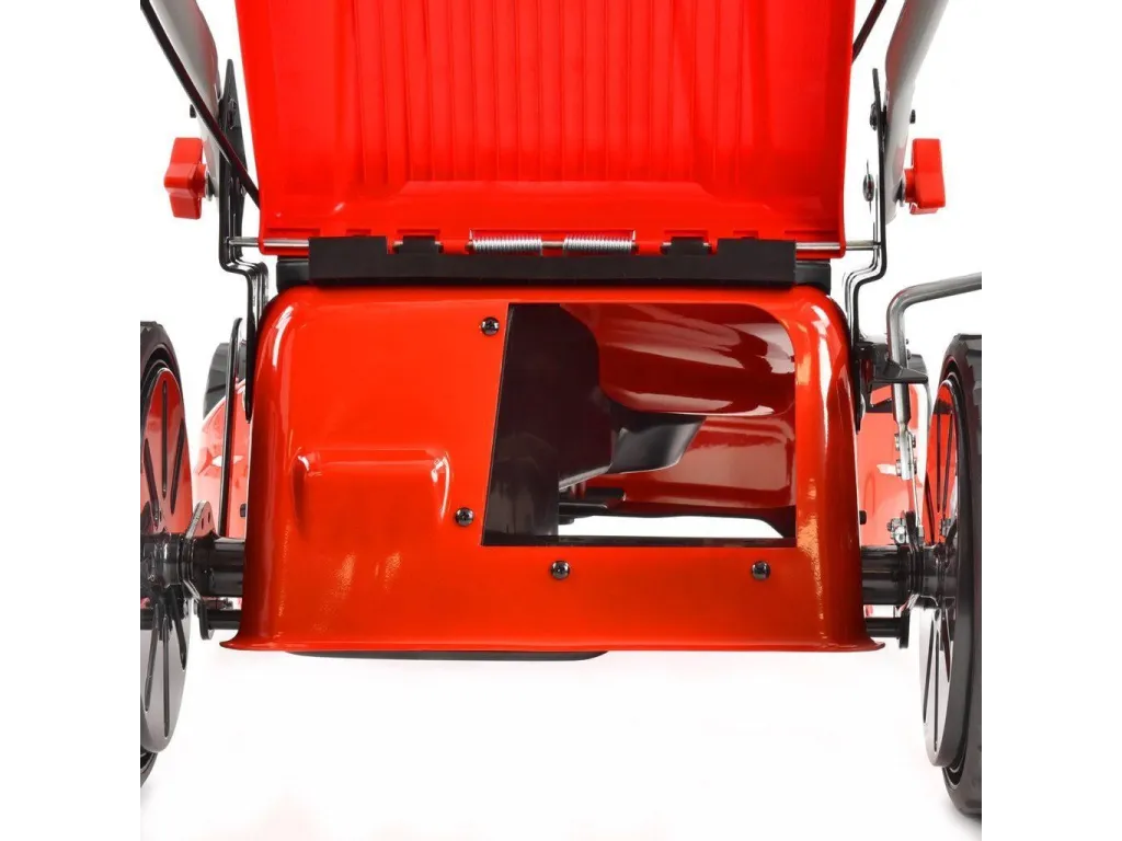 Aj napriek masívnemu spracovaniu kosačka váži len 32 kg. Pre zachytávanie pokosenej trávy slúži 55 l kôš z plastu a odolnej textílie, ktorý je pre lepšiu kontrolu stavu naplnenia opatrený kontrolnou klapkou. Táto klapka vďaka zmenám v prúdení vzduchu v závislosti na naplnení koša mení svoju polohu a tak má obsluha vždy prehľad o obsahu koša. Pevne uchytená rukoväť je vďaka použitiu krídlových matíc ľahko zložiteľná a nájdete na nej ľahko dostupné všetky hlavné ovládacie prvky kosačky. Príjemné je polstrované madlo zmierňujúce prenášanie vibrácií.