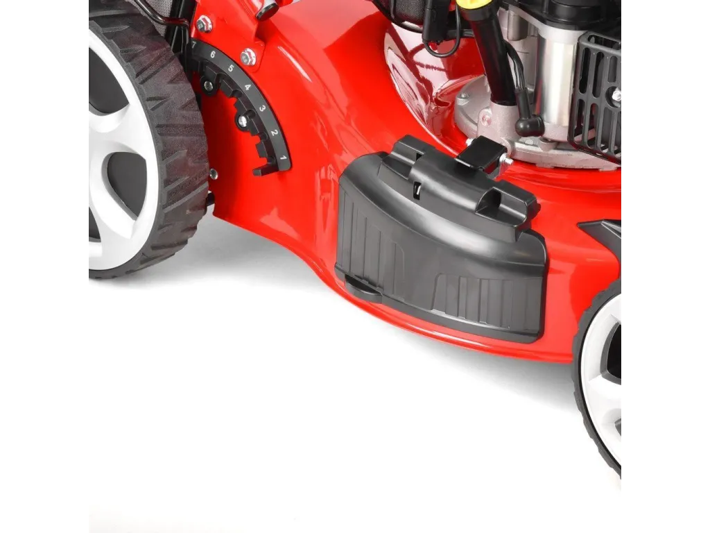 Štyri rýchlosti pojazduZvolenie požadovanej rýchlosti sa vykonáva pákou priamo na paneli madla kosačky. Táto funkcia umožní prispôsobiť rýchlosť kosačky ako pohodlnej obsluhe, tak vlastnostiam koseného trávnika a štruktúre pozemku. Pomalší pojazd je tak vhodnejší napríklad pre niektorých seniorov. Pomalší pojazd je vhodný aj na prerastený trávnik, kosačka sa nehltí veľkým množstvom trávy a pri pomalom pojazde ho lepšie stíha odhadzovať do koša alebo bočného vyhadzovania. Naopak rýchlejší pojazd využijete predovšetkým u pravidelne udržiavaných trávnikov, kde zastrihávate len končeky trávnika. Kosenie je potom rýchlejšie a neplytváte zbytočne výkonom kosačky. Samotný pojazd sa aktivuje pomocou páky, ktorú pri kosení pridržiavajte u madla. Pri uvoľnení páky kosačka okamžite zastaví. Tento spôsob ovládania slúži zároveň ako bezpečnostný prvok, nie je tak možné, aby sa kosačka náhodne rozbehla sama. |