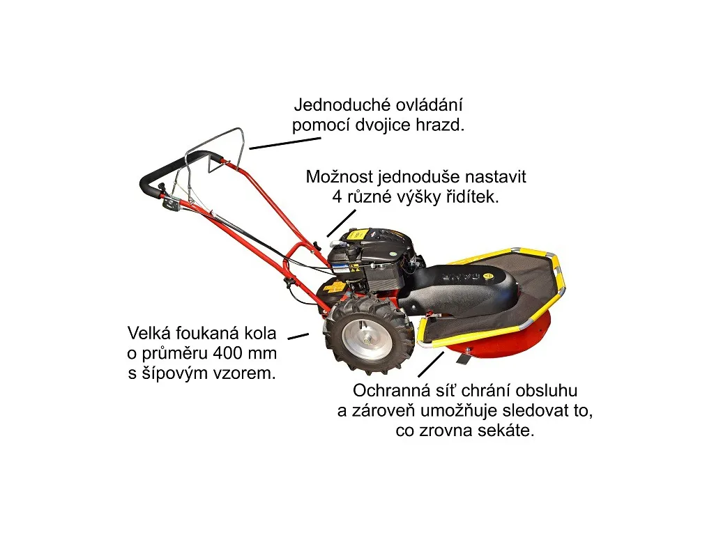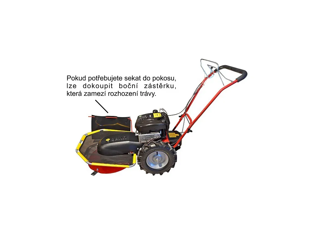 Nerezový kryt kosenia spĺňa najnovšie bezpečnostné normy, podľa ktorých musí byť polovica žacieho taniera zakrytá pevným krytom až pod úroveň žacích nožov.