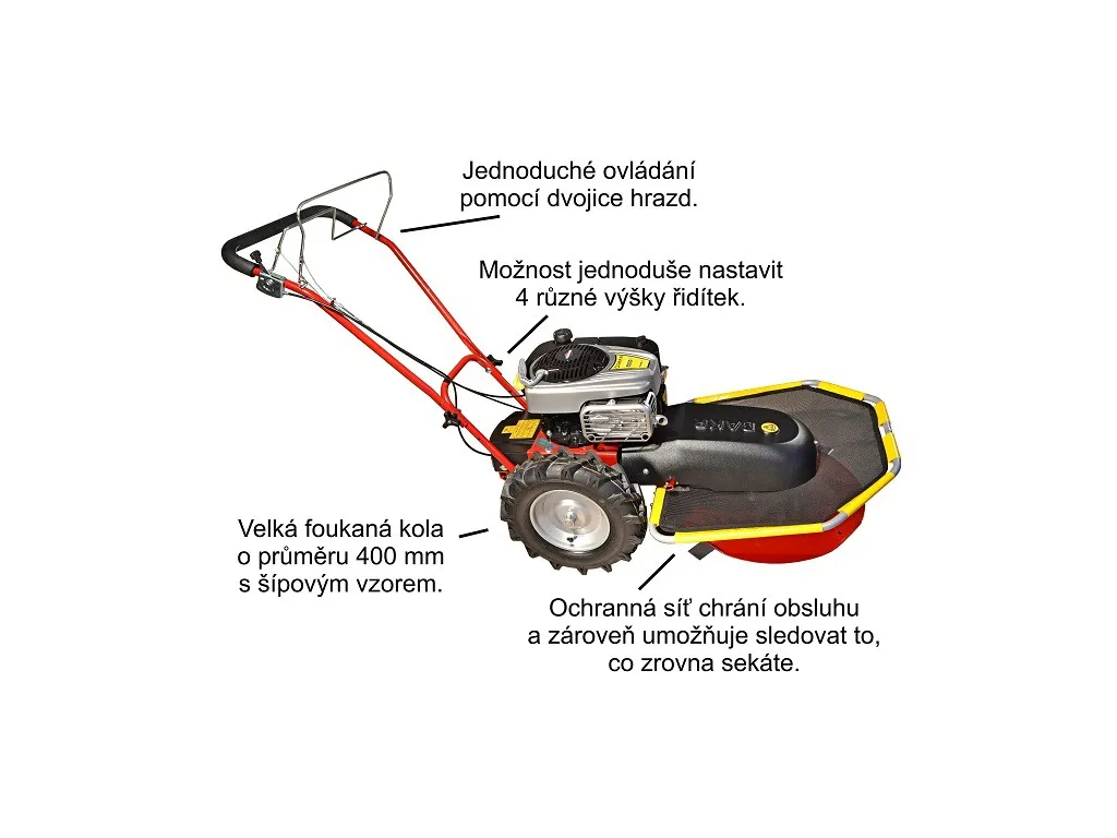 Nerezový kryt kosenia spĺňa najnovšie bezpečnostné normy, podľa ktorých musí byť polovica žacieho taniera zakrytá pevným krytom až pod úroveň žacích nožov.