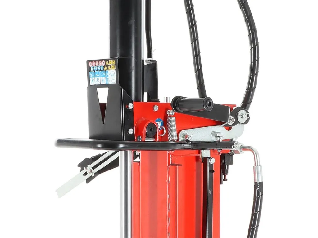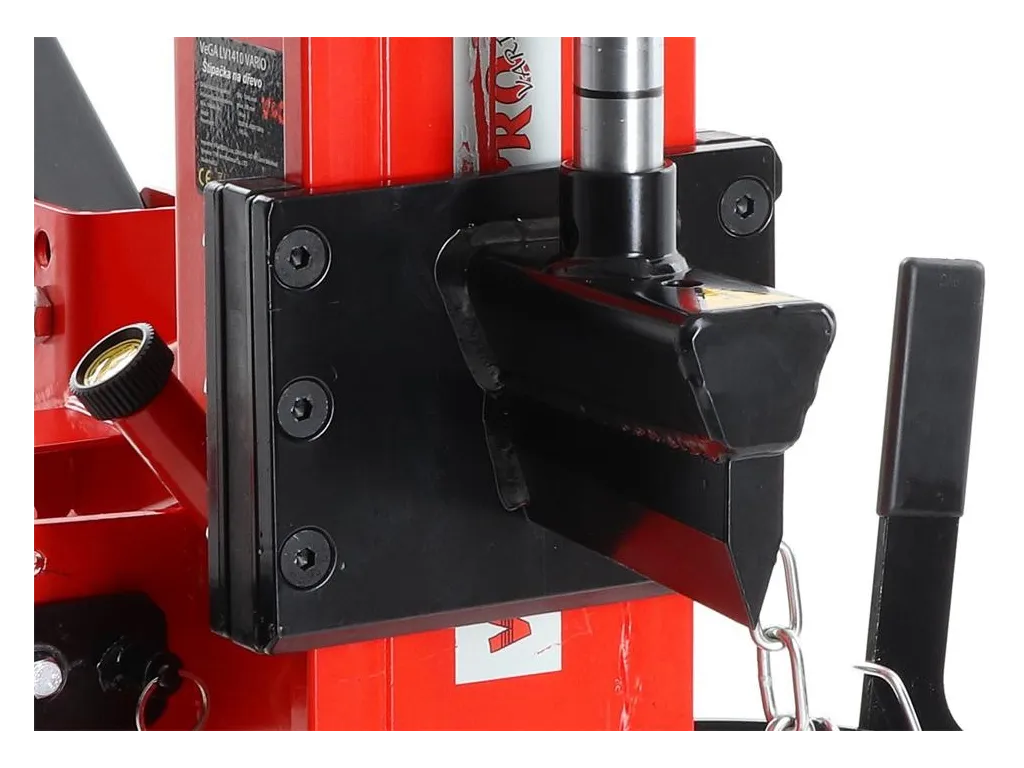 Štiepačka VeGA LV1410PRO VARIO spĺňa novú normu EÚ pre bezpečnosť práce. K štandardnému obojručnému ovládaniu tak pribudlo nové, väčšie ochranné rameno a transportné koleso pri vodiacich rukovätiach pre ľahký prevoz štiepačky. Ľavá ovládacia páka je vybavená zariadením na zaistenie stability polena.