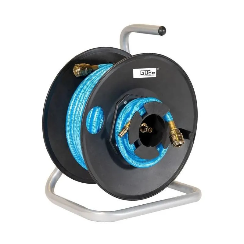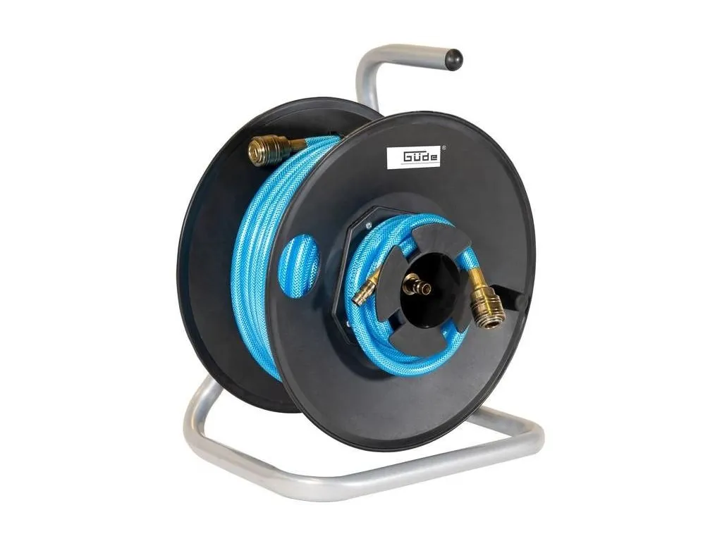 Prenosný navíjací bubon z tvrdeného plastu na rúrkovom podstavci. Kovový rám s povrchovou úpravou pozinkovaním. Pneumatická PVC hadica s textilnou vložkou, rýchlospojkou a axiálne vyvedenou vsuvkou (priamo z bubna), spojovacia hadica s koncovkami pre pripojenie ku kompresoru.Materiál: PVCMaximálny pracovný tlak: 11 barDĺžka hadice: 20 mVonkajší priemer: 11 mmVnútorný priemer: 6 mmDeštrukčný tlak: 15 barRozmery (DxŠxV): 290 x 210 x 340 mmHmotnosť netto/brutto: 3,3 kg/3,9 kg