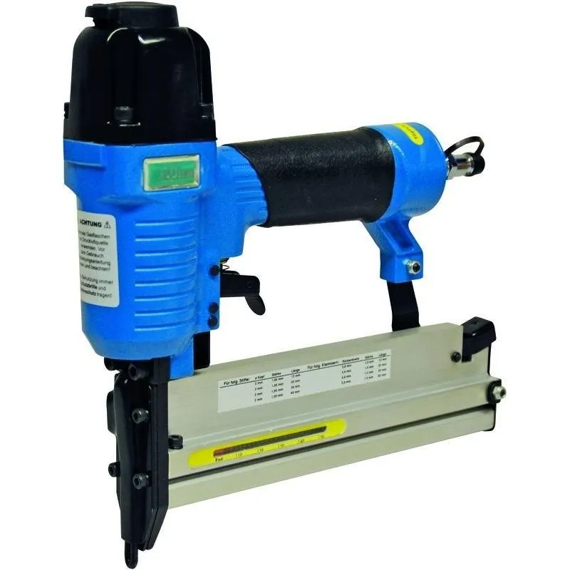 Vybavenie: spinky 20/32/40 mm po 500 ks, klince 25/40 mm po 1000 ks, náhradný úderník, olejnička 30 cl, transportný kufrík. Vsuvka je súčastou náradia.