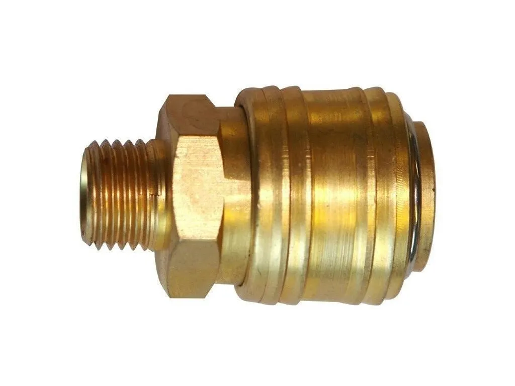 Mosadzná hadicová rýchlospojka so závitom. V balení 1 ks.Prípojný závit: 1/2" AGRozmery (DxŠxV): 42 x 26 x 26 mmHmotnosť netto/brutto: 0,07 kg/0,087 kg