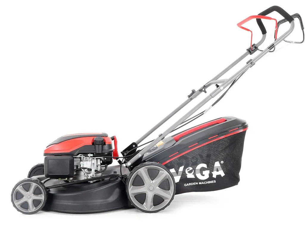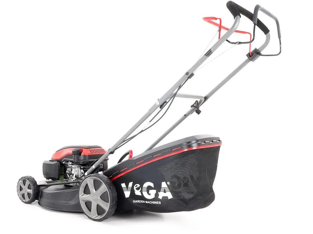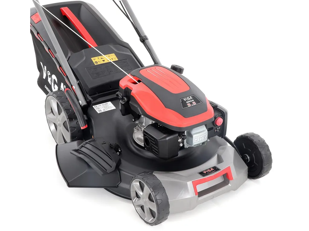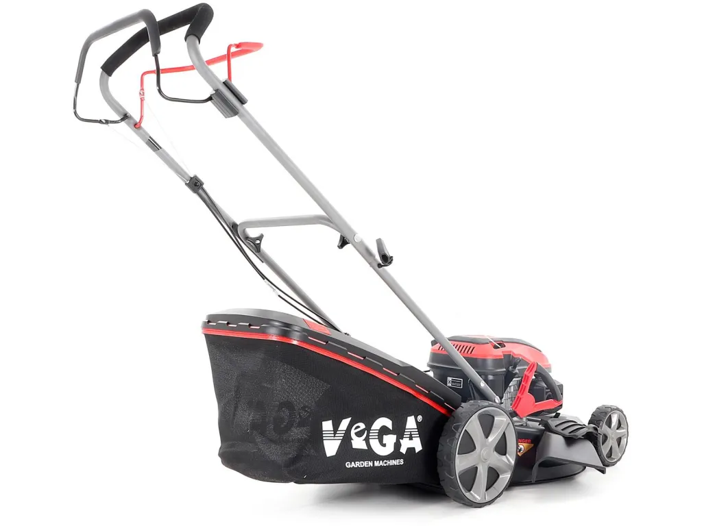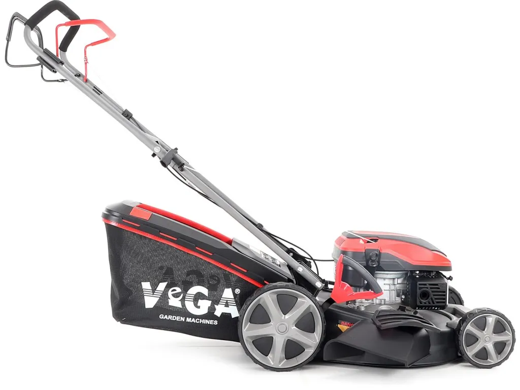 Velká zadní pojezdová kola i přední kola jsou uložena v oboustranných kuličkových ložiscích, centrální nastavení výšky sečení je u značky VeGA také samozřejmostí, jako ergonomické měkčené madlo.