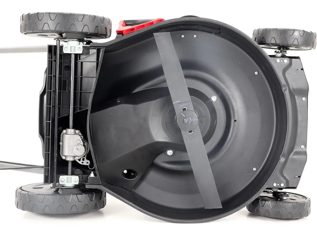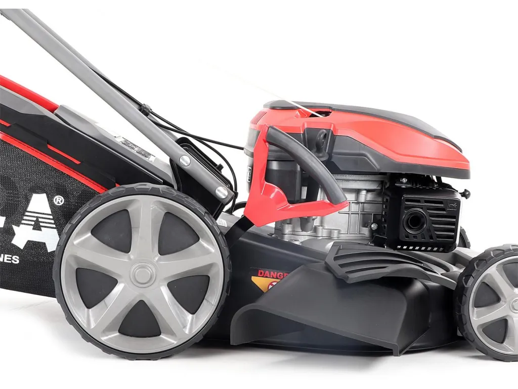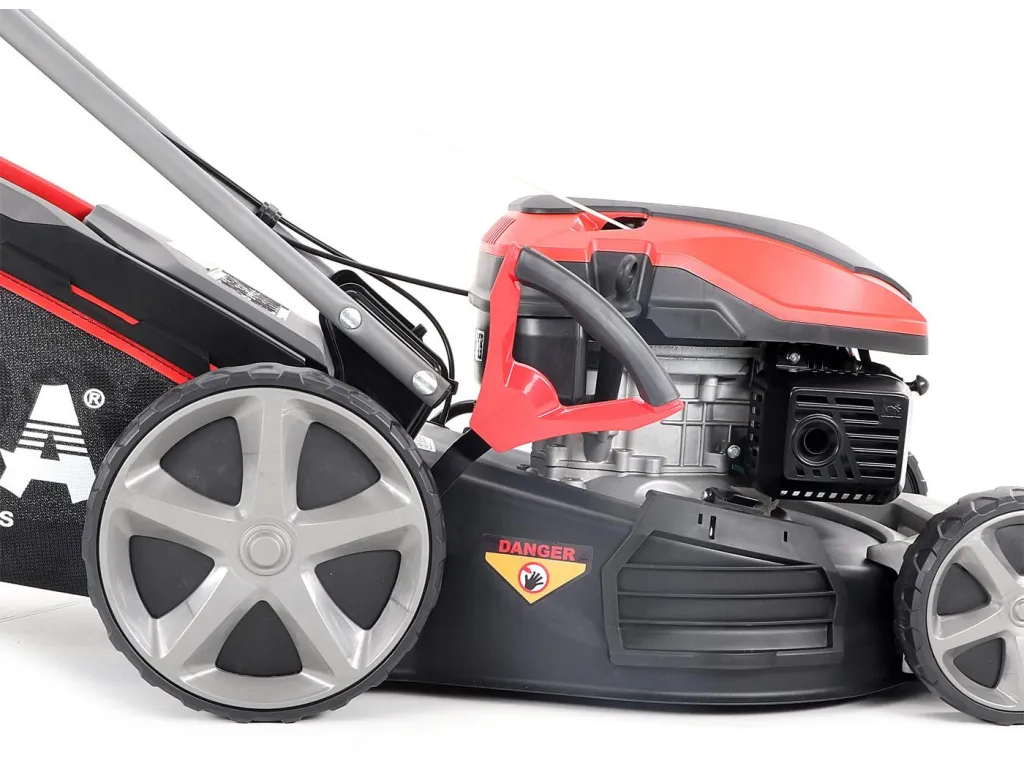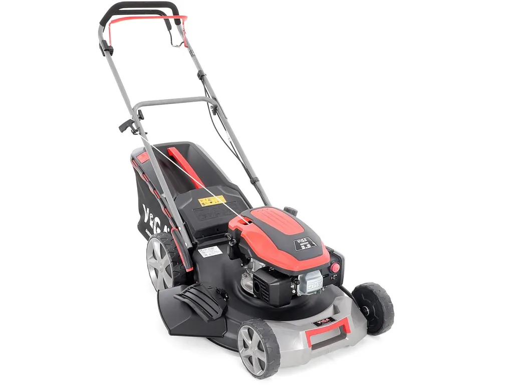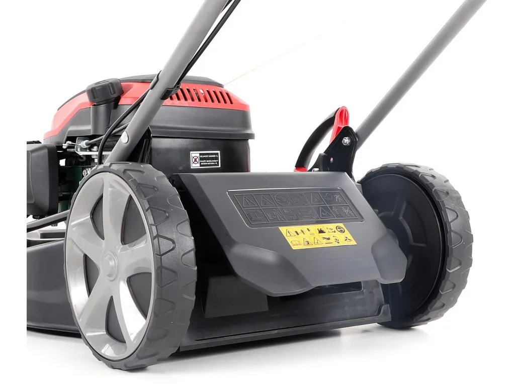 Velká zadní pojezdová kola i přední kola jsou uložena v oboustranných kuličkových ložiscích, centrální nastavení výšky sečení je u značky VeGA také samozřejmostí, jako ergonomické měkčené madlo.