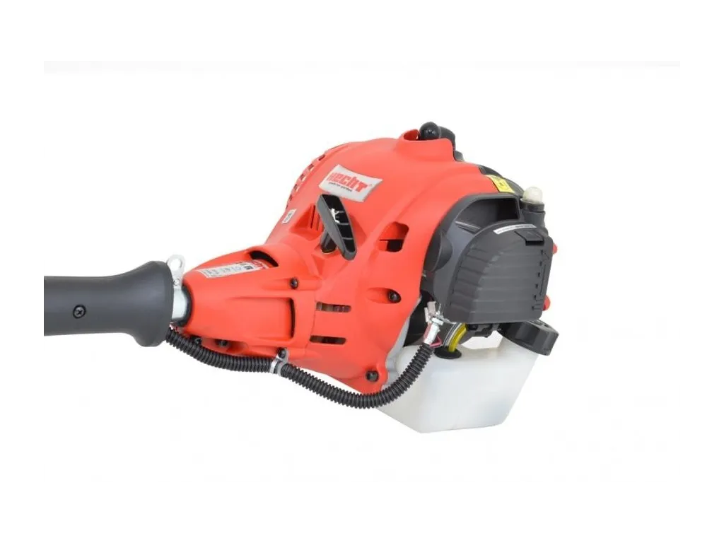 Deliteľný hriadeľ oceníte pri preprave a uskladnení. Benzínový dvojtaktný motor s výkonom 0,8 kW poháňa cievky s dvoma strunami so záberom 43 cm. Poloautomatický systém odvíjania sa stará o správnu dĺžku vyžínacích strún. Ak sa opotrebovaním počas práce struna neúmerne skráti, stačí jemne poklepať vyžínacou hlavou a tá uvoľní strunu. Zastrihávač sa potom postará o správnu dĺžku a vy tak môžete pokračovať v práci bez zastavovania a ručného nastavovania dĺžky struny. Vďaka benzínovému motoru je vyžínač vhodný na použitie v miestach, kde nie je dostupný el. prúd.
