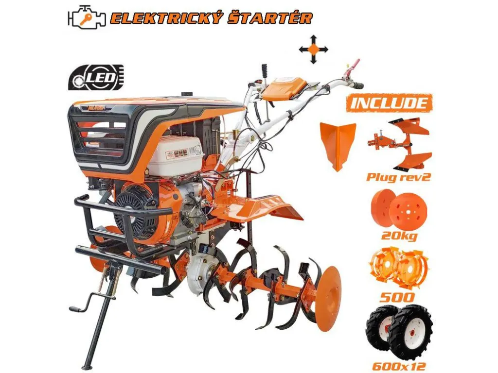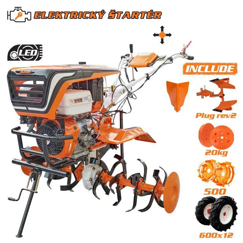 Profesionálny motorový kultivátor RURIS 918ACC umožňuje pripevnenie širokého sortimentu príslušenstva ako sú: protizávažia, jednoradličný pluh, brány, otočný pluh, vyorávač zemiakov, kultivátor, sejačka, kovové alebo gumené kolesá, príves...