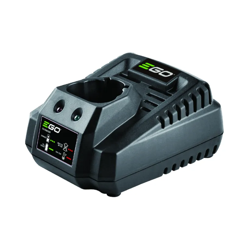 12 V nabíjačka CCH0450E je náhradná nabíjačka pre 12 V nožnice na trávu a kríky EGO POWER+ CHT2001E. Vybavená je LED indikátorom stavu nabitia a slúži na nabíjanie 2.0 Ah (24 Wh) batérie CBA0420.