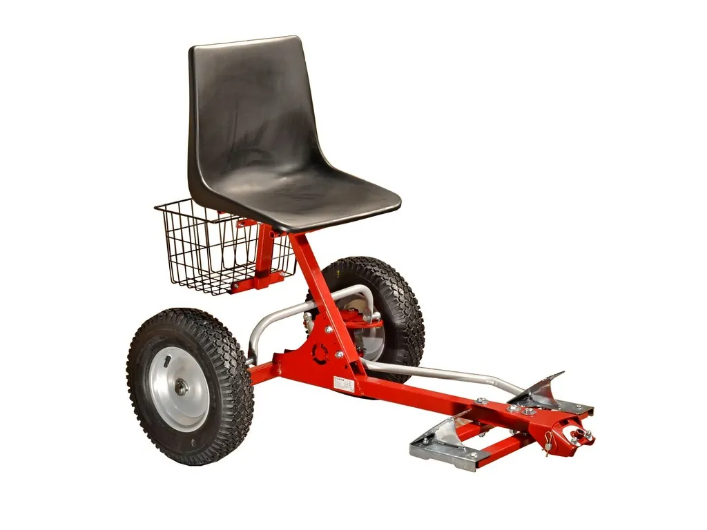 Prípojné sedačky k kosačkám na vysokú trávu sú určené pre prácu na veľkých, rovinatých a mierne svahovitých pozemkoch. Ľudia si často neuvedomujú, že pokosiť 1 hektár lúky znamená u menších strojov pri skutočnom zábere 50 cm ujsť minimálne 20 kilometrov. Prípojné riadená sedačka BPR2 Vám uľahčí prácu aj tam, kde je potreba často meniť smer jazdy, cúvať a pod. Sedačka využíva originálny systém zatáčania zadnej nápravy. Toto riešenie sme vyvinuli, aby sme našim zákazníkom umožnili konkurovať so stavebnicou PANTER menším 4-kolesovým malotraktorům. Po pripojení riadené sedačky k pohonnej jednotke získavate zo stroja 4-kolesového pomocníka so zadnou riadenou nápravou.