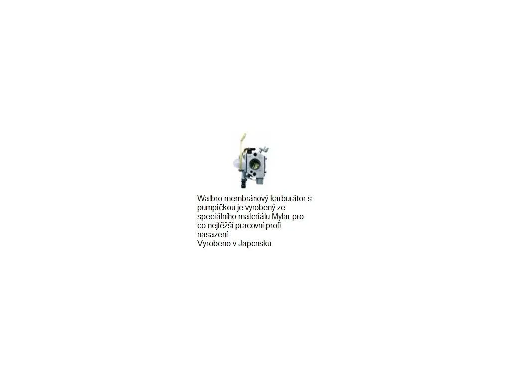 Walbro membránový karburátor s pumpičkou je vyrobený ze speciálního meteriálu Mylar pro co nejtěžší pracovní profi nasazení. Vyrobeno v Japonsku.