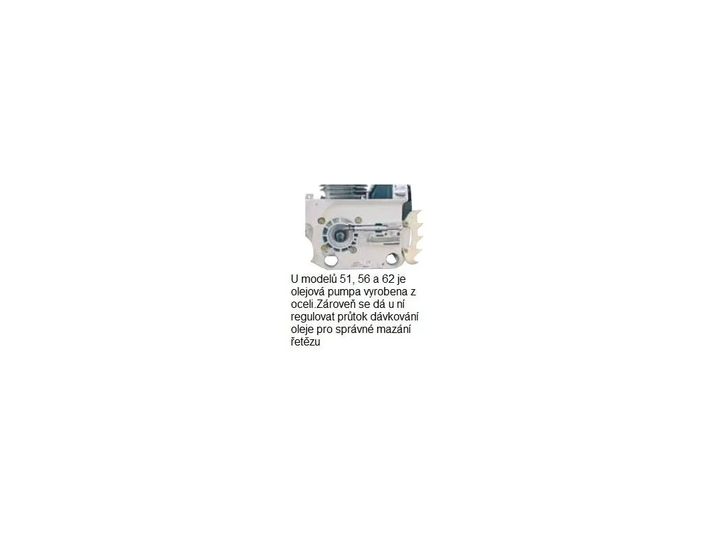 U modelů 51, 56 a 62 je olejová pumpa vyrobena z oceli. Zároveň se dá u ní regulovat průtok dávkování oleje pro správné mazání řetězu.