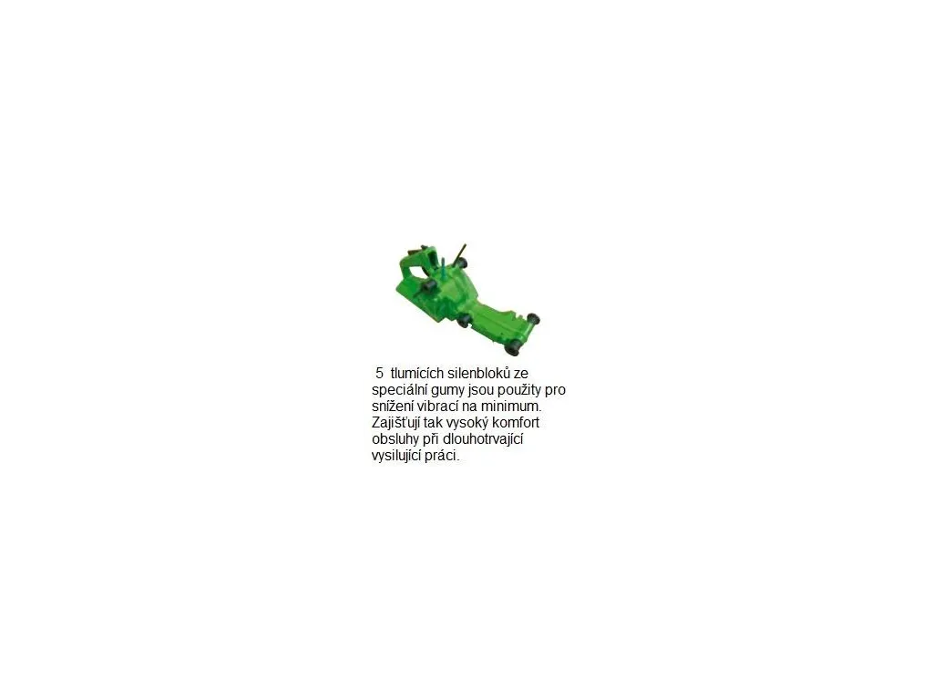 5 tlumicích silenbloků ze speciální gumy je použito pro snížení vibrací na minimum. Zajišťují tak vysoký komfort obsluhy při dlouhotrvající vysilující práci.