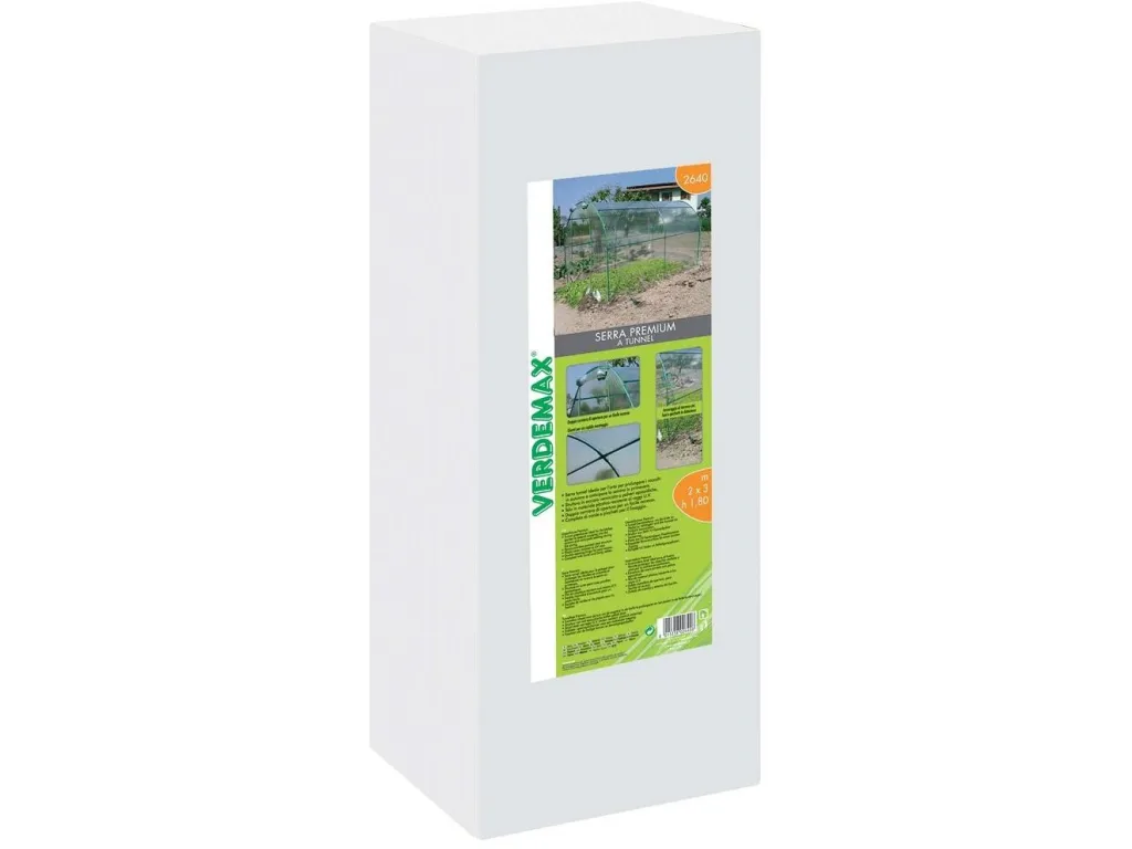 Tento kvalitný záhradný fóliovník talianskej značky VERDEMAX má odolný oceľový rúrkový rám povrchovo dokončený epoxidovou práškovou farbou, plastové spojky, bez skrutiek na rýchlu a veľmi jednoduchú montáž. Vysoko kvalitná priehľadná plastová fólia s odolným UV filtrom zaisťuje dlhšiu životnosť, chráni pred vetrom, dažďom, zimou aj UV žiarením. Fóliovník má vstupný otvor na zips pre ľahký prístup 80x170 cm. Otvorenie je možné zaistiť popruhmi