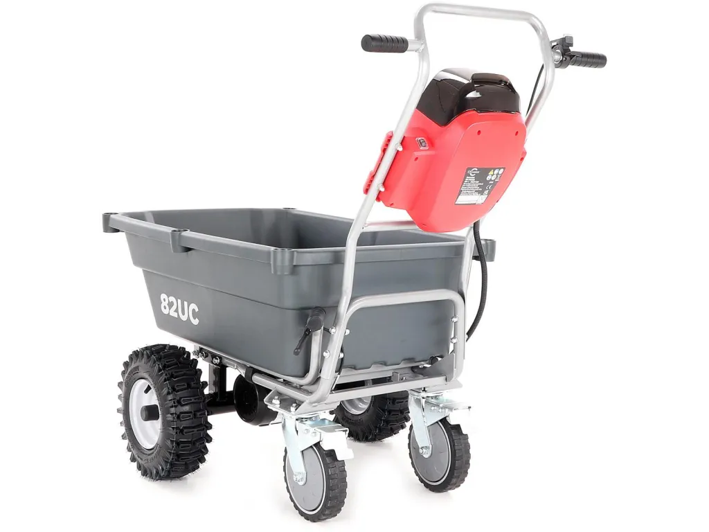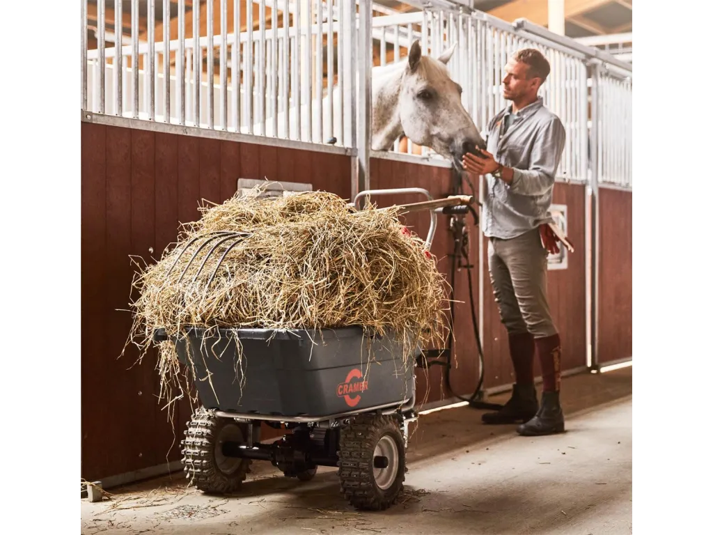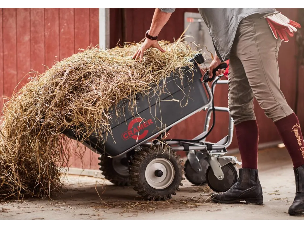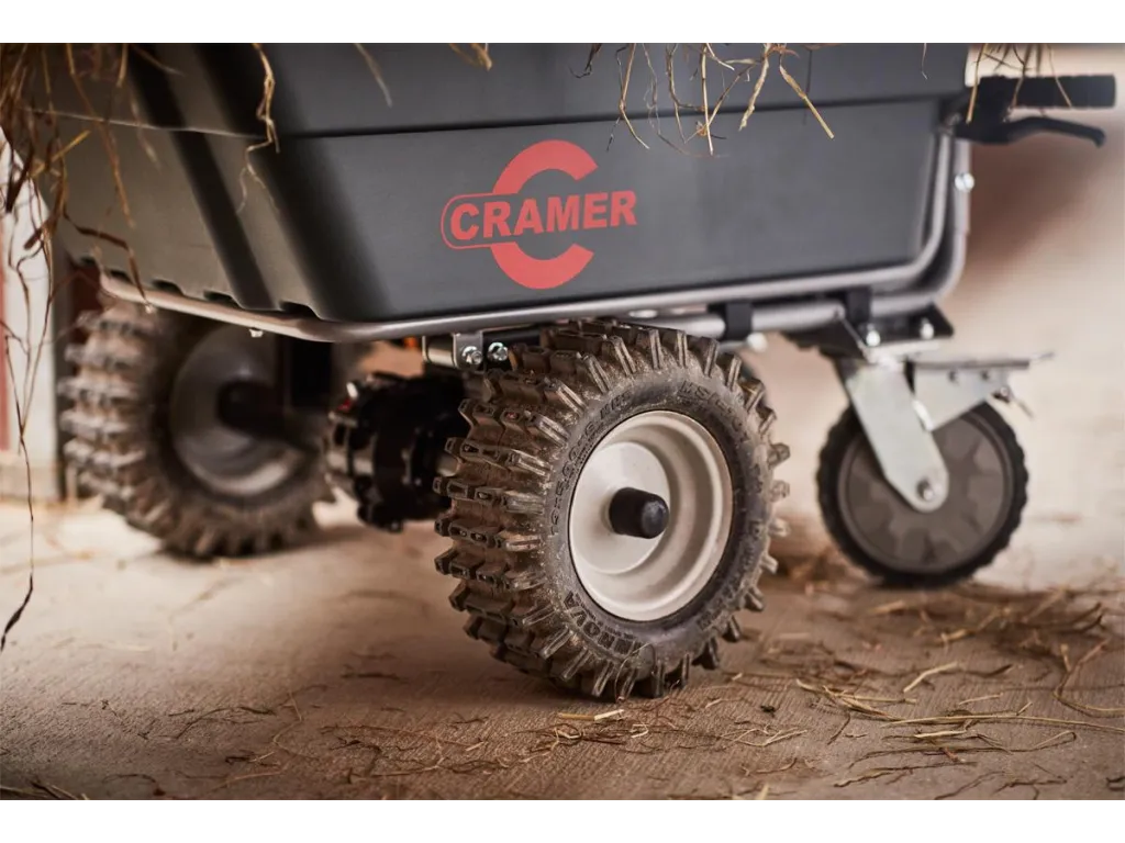 Pokud potřebujete přepravovat těžké nebo objemné předměty, jednoduše použijte extrémně stabilní bateriový motorový vozík Cramer 82V. Díky čtyřem kolům je velmi robustní a poskytuje úlevu pro vaše paže a záda, zejména na svazích a plošinách. Pro větší pohodlí a snadnou manipulaci lze návěs naklápět pomocí plynové tlakové pružiny. Díky bezkomutátorovému elektromotoru přepraví bateriový užitkový vozík vše bez hluku a emisí.