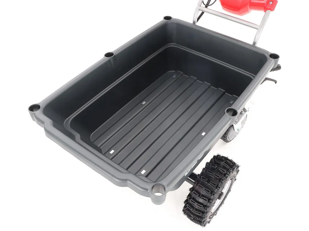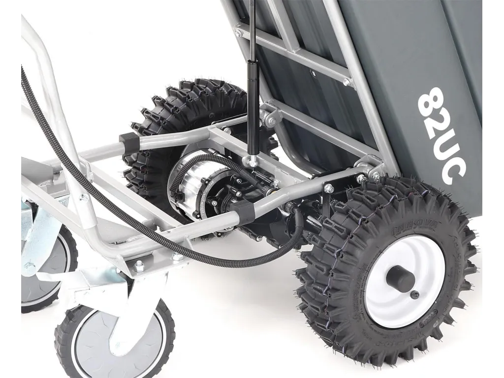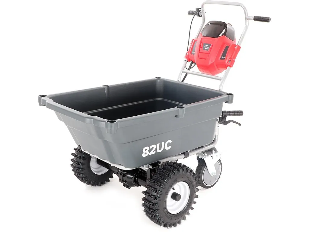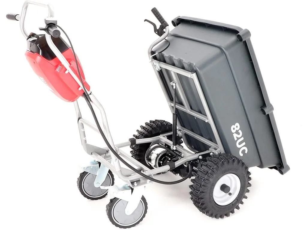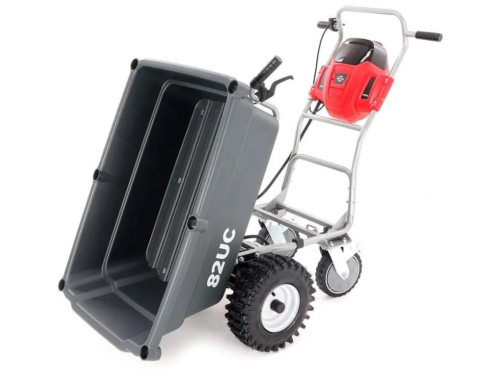 Pokud potřebujete přepravovat těžké nebo objemné předměty, jednoduše použijte extrémně stabilní bateriový motorový vozík Cramer 82V. Díky čtyřem kolům je velmi robustní a poskytuje úlevu pro vaše paže a záda, zejména na svazích a plošinách. Pro větší pohodlí a snadnou manipulaci lze návěs naklápět pomocí plynové tlakové pružiny. Díky bezkomutátorovému elektromotoru přepraví bateriový užitkový vozík vše bez hluku a emisí.