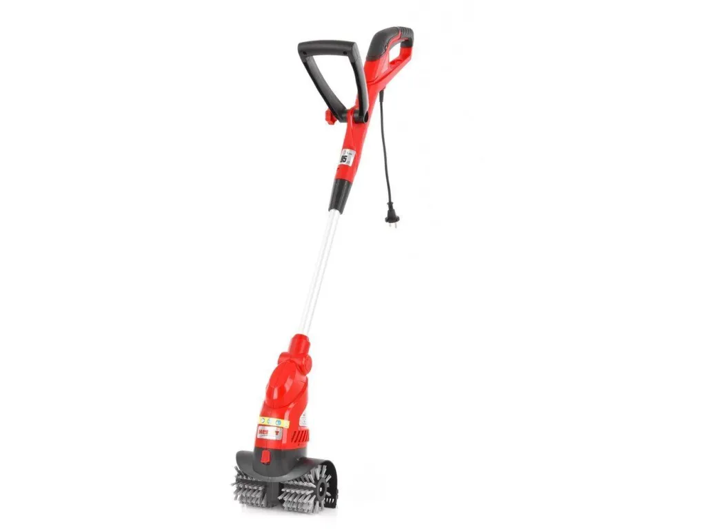 Elektrický čistič škár 2in1. Vhodný pre väčšie plochy aj škáry. Príkon 550 W, hmotnosť 2,9 kg. Záber 210 mm. Súčasťou je plastová a drôtená kefa. Efektívne odstraňuje burinu z chodníkov, terás, dlažieb a pod. Teleskopická rukoväť 94-123 cm.