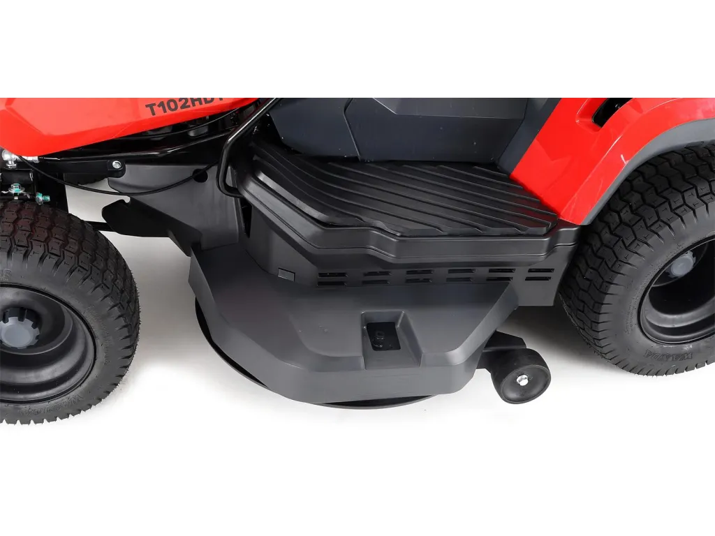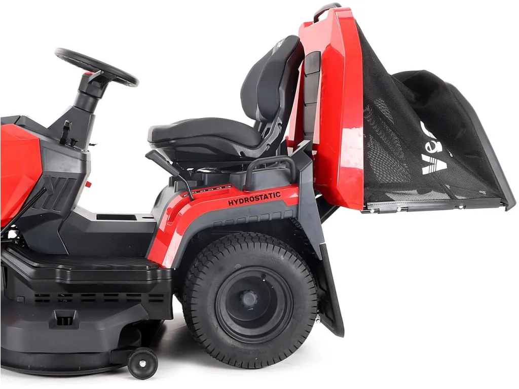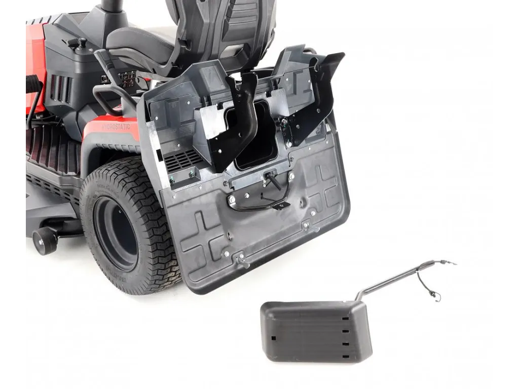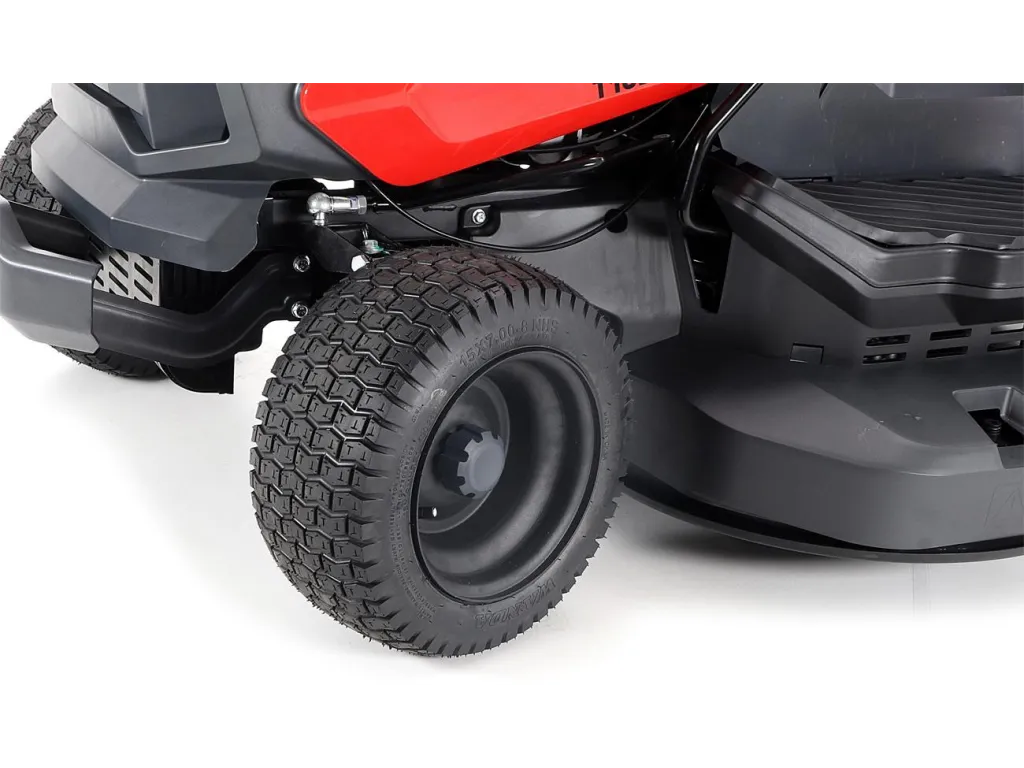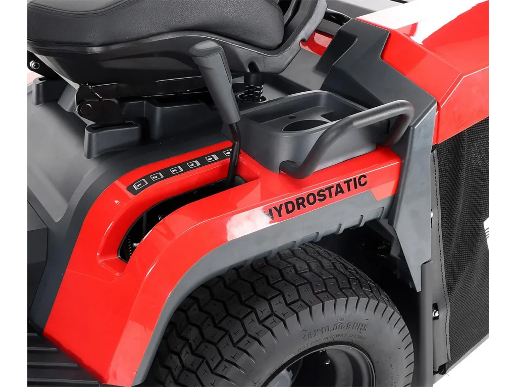 Hydrostatická převodovka zajišťuje plynulý a komfortní pohyb i v náročném terénu. Díky velkému sběrnému koši o objemu 280 litrů se nemusíte obávat častého vysypávání posekané trávy. Přední kola o velikosti 15“ x 7.00 “- 8 a zadní kola o velikosti 18“ x 10.00“- 9 spolu s dvojicí anti-skalpovacích kol zajišťují stabilitu a ochranu vašeho trávníku před poškozením.