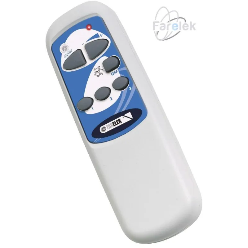 Veľmi ľahké a pohodlné ovládanie stropného ventilátora FARELEK z Vášho gauča, kresla či postele. Diaľkové ovládanie umožňuje prepínať rýchlosť otáčok, vypnutie a zapnutie ventilátora a svetla. Zároveň môžete aj svetlo stmievať.