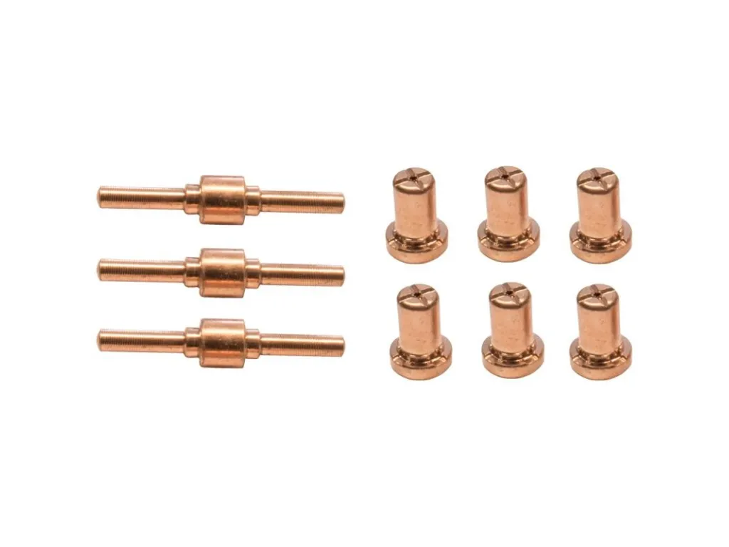 Sada príslušenstva ku Plazmovej rezačke GPS-E 40 A (kód tovaru: 20086), Plazmovej rezačke GPS-E 40 A.2 (kód tovaru: 20092), pozostáva z 3 elektród a 6 plazmových rezacích dýz.Dĺžka: 39 mmŠírka: 8 mmVýška: 8 mmHmotnosť netto/brutto: 0,53 kg/0,63 kg
